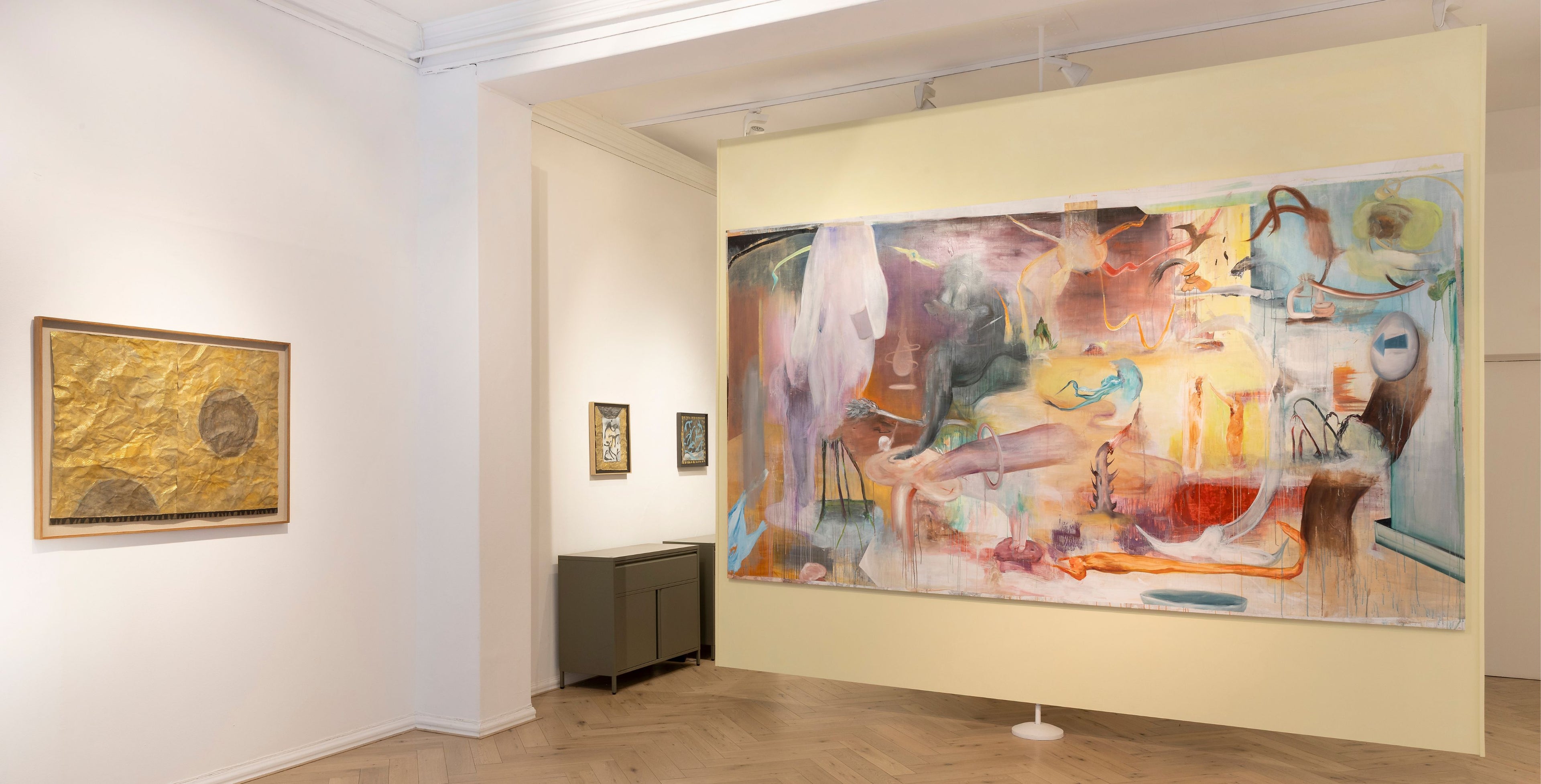 In contrast, a more eruptive sensibility challenges the abstract, as Nada Baraka conjures visceral worlds that resist stasis. Baraka’s paintings embody distorted forms and fluid layers, refusing coherence and inviting ambiguity. These compositions are not static images but unstable environments with spaces suspended in unresolved tension. Simultaneously intimate and alien, they hold strange beauty and the surreal potential of absurdity. Rather than offering resolution, Baraka’s works act as thresholds and portals to futures that remain just out of reach.