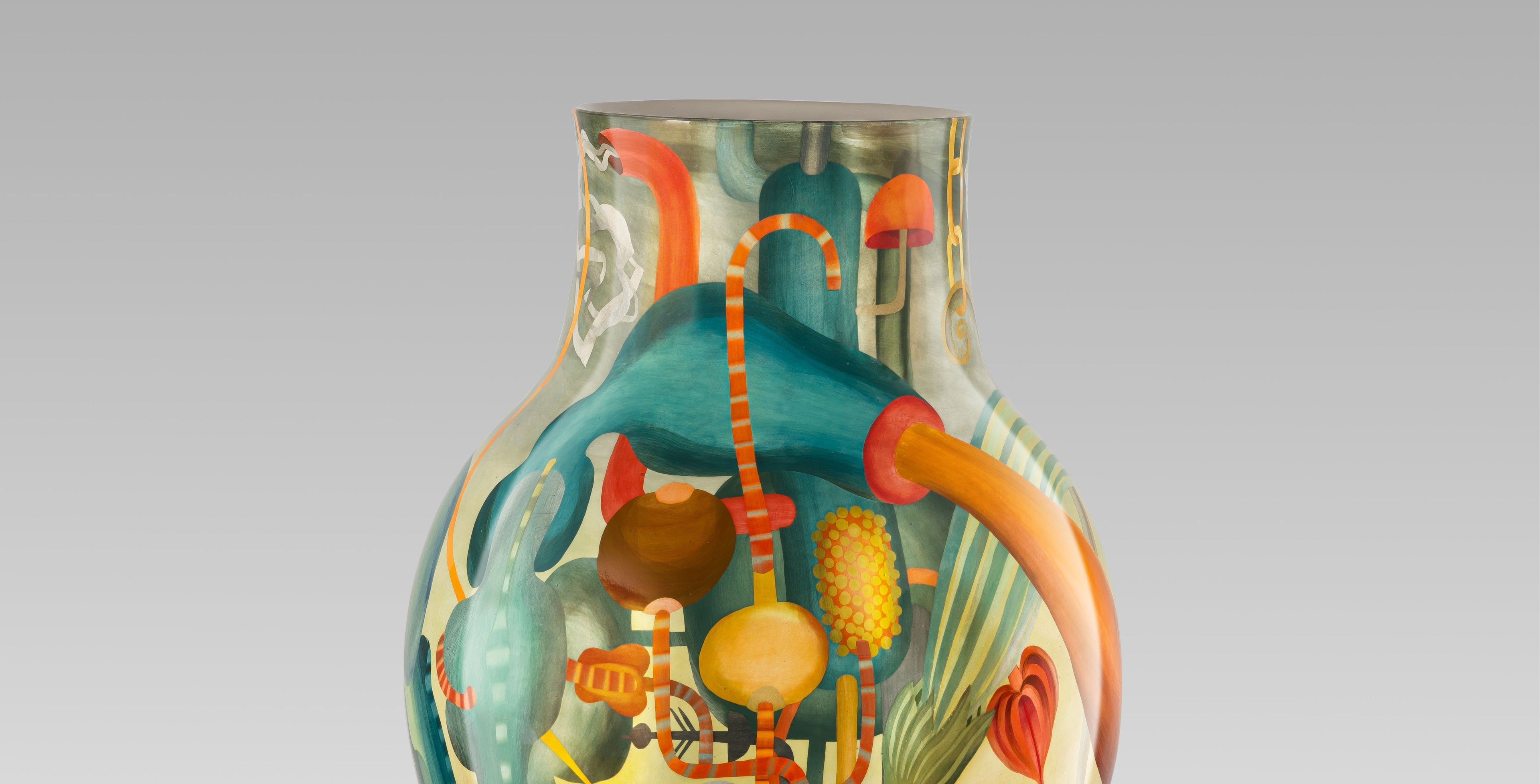 “I am an artist who chooses to paint on ceramics. My large painted porcelain vessels embrace a love of colour and depict my immediate surroundings. Recent works are a collaboration with master hand-builder Ian Garrett, who creates forms with subtle and taut curves that are an ideal surface on which to express my ideas. Working on a three-dimensional surface, of which half is obscured at any one time, allows for the narrative to be revealed as the viewer circles the work. This introduces time as a fourth dimension, in which imagery unfolds as static animation”. - John Newdigate
