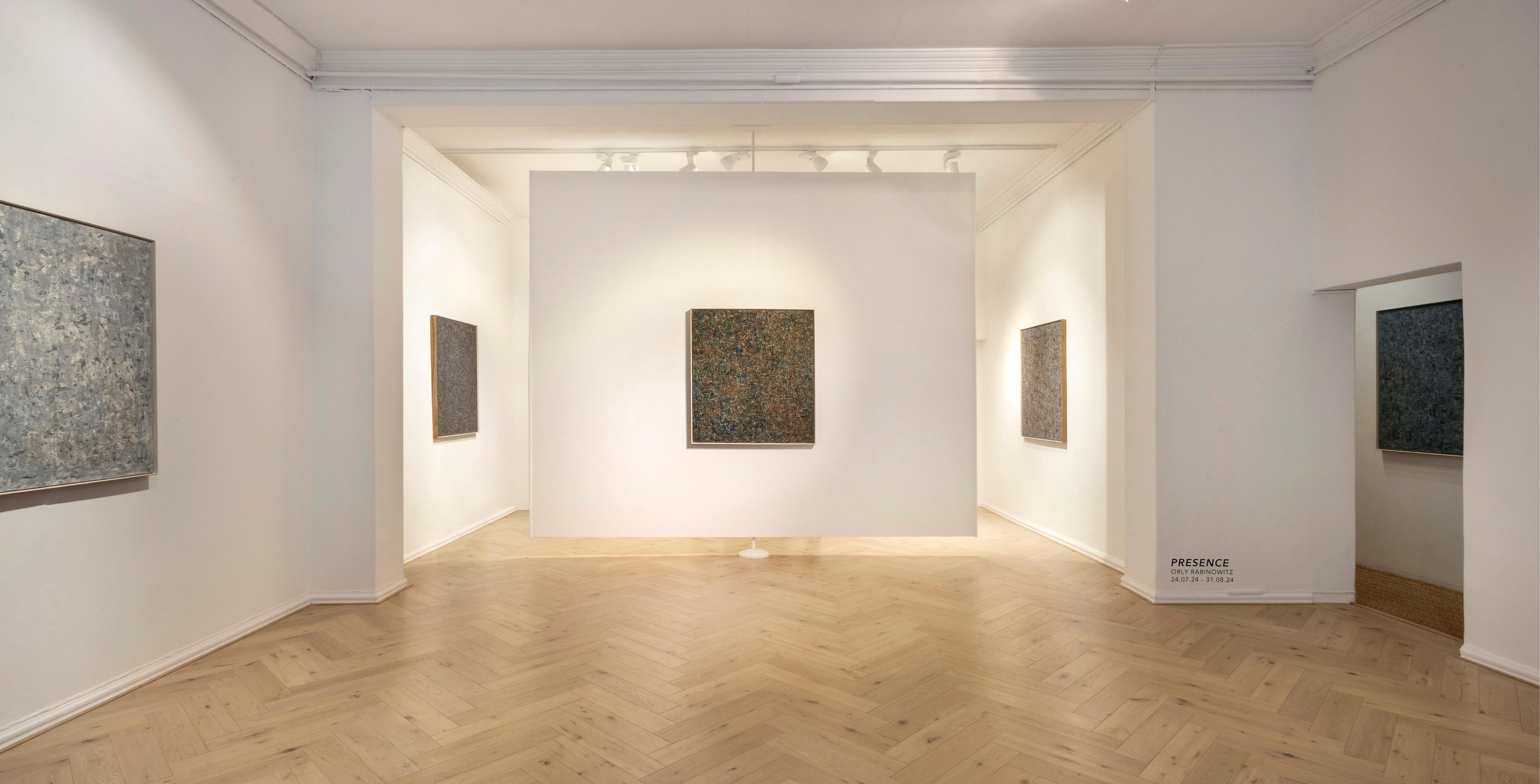 ‘Presence’ contemplates Rabinowitz’s ongoing exploration of the unseen: seeking to uncover connections between the personal and the communal, the known and the enigmatic, each piece acts as a gateway to a world where atmosphere and emotion intertwine, where the silence and solitude of her early years resound in the harmony of each charged brushstroke.