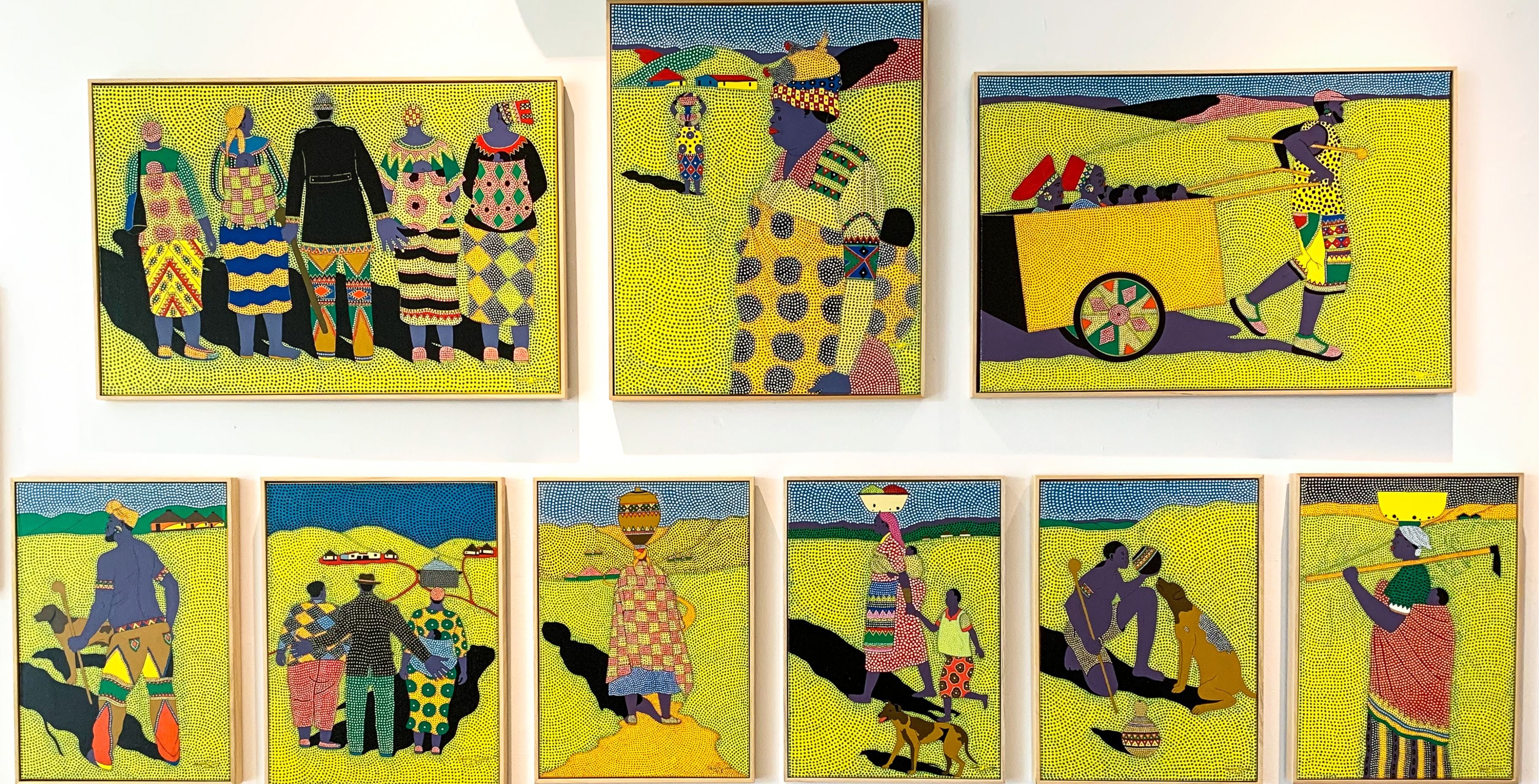 Duma’s talent was originally noticed and nourished by the late Trevor Makhoba (1956 – 2003) through his Philange Art Project based in Umlazi, a township south of Durban where Makhoba had built a studio space behind his house. From 1994 Duma was under Makhoba’s tutelage and has subsequently shared a stage with Makhoba and another former student, Welcome Danca. Together they held a number of exhibitions at the African Art Centre in Durban. Following Makhoba’s death in 2003, Duma has continued to build on his own narrative. The influence of Makhoba is still visible, but this does more credit than harm. Since 2003 Duma’s paintings have been exhibited frequently including notable solo exhibitions at EBONY/CURATED, Stevenson, ABSA Gallery, Johannesburg and the AVA Gallery, Cape Town. His artworks are held in public and private collections.