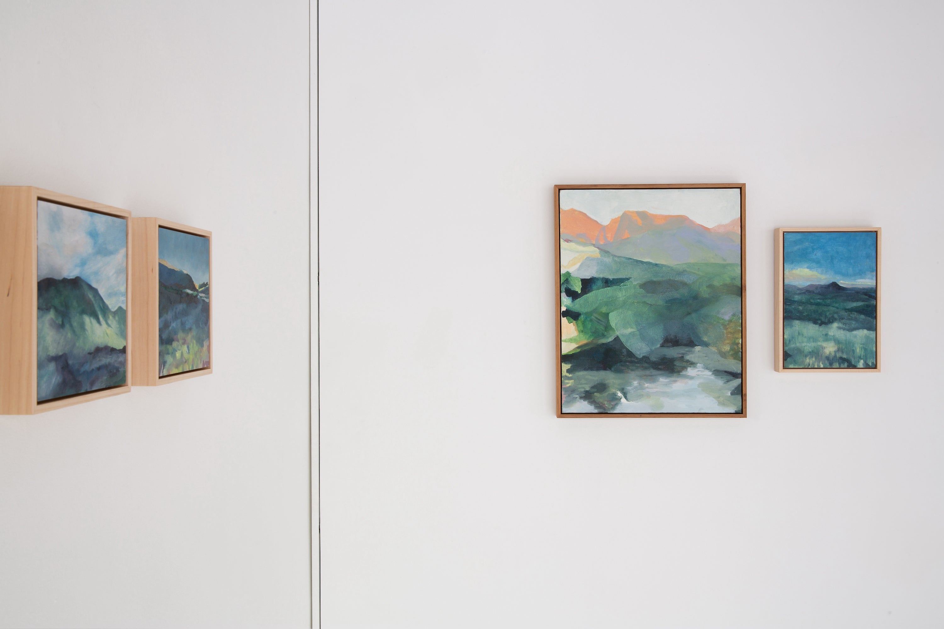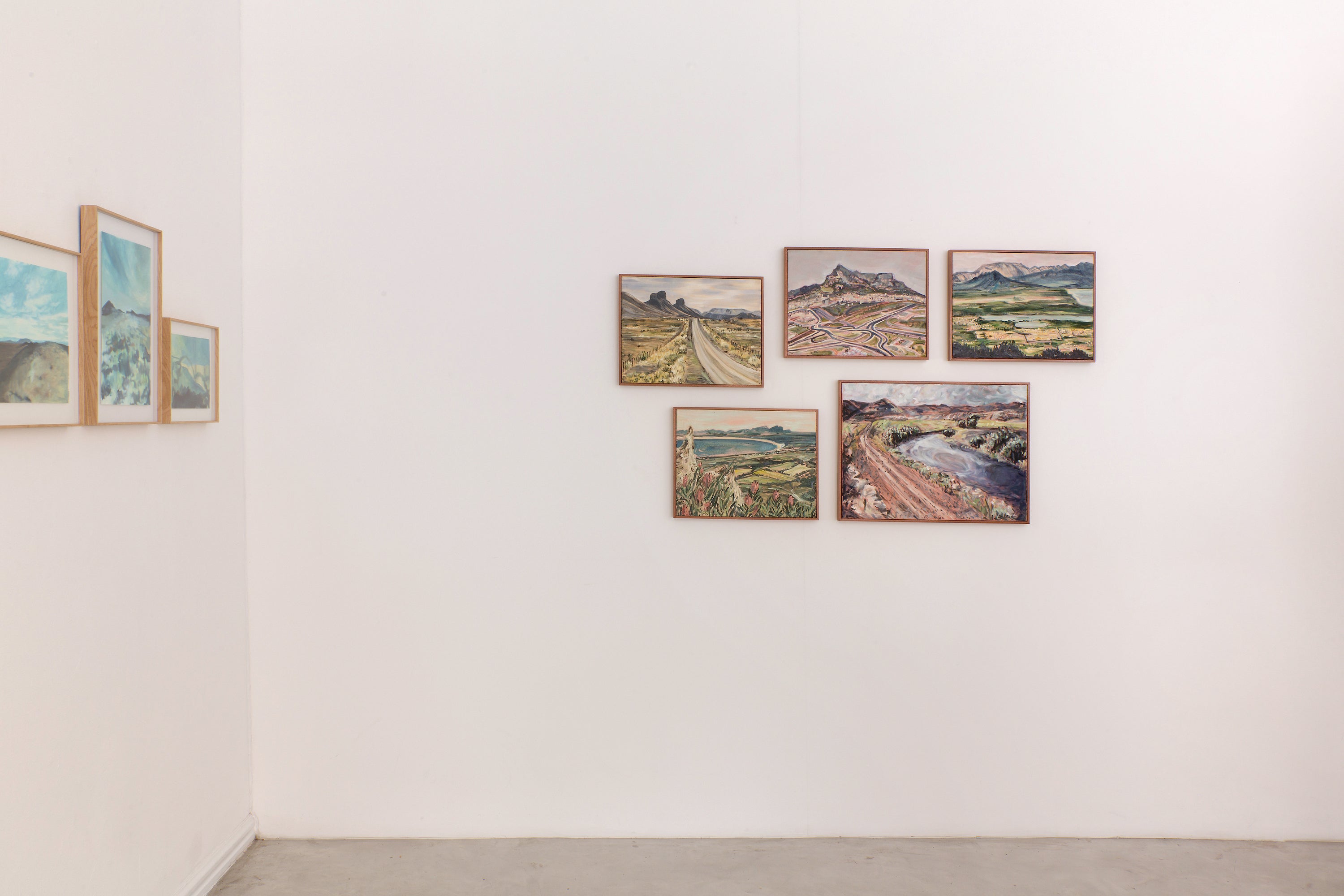 the two artists here, larita and rentia, share not only medium and subject matter, but a careful and considerate approach to this complicated tradition by way of a generous interpretation of sites/spaces familiar to them, that they long for, interpretations that provide “a sightline to tranquillity during a period of uncertainty, restriction and confinement”, as noted by the artists. (the buzz of the koeberg interchange, 2020, can be considered an exception here, in a generative way that disrupts the ‘quiet’ in the paintings’ and loneliness of space, as expressed by larita. read another way, the knotted roads of this particular painting are also a stark contrast to the gentle and inviting paths and roads that lead nowhere/anywhere throughout the show - in both larita’s and rentia’s pieces - functioning similarly to how the window traditionally functioned in european art and philosophy).