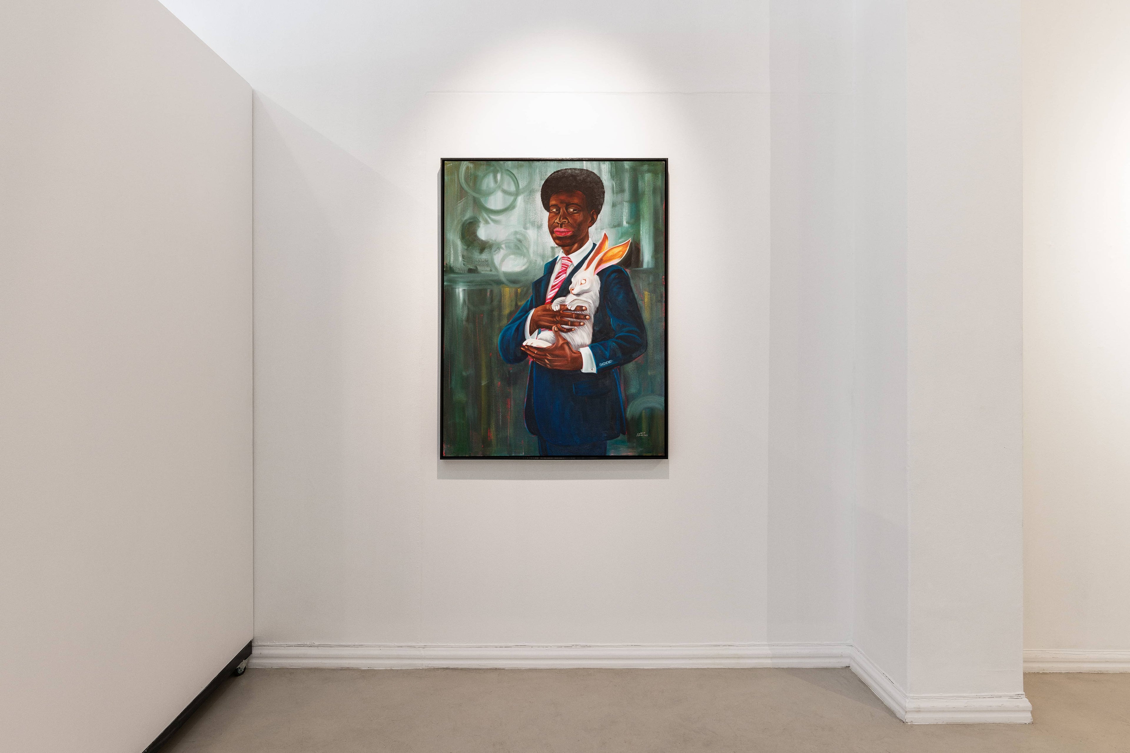 Zemba Luzamba is thinking about animals as they appear in fables and totems, the stories we tell to children for wisdom and warning, and the sacred symbols that represent a unified group of people. With these in mind, this Congolese painter has created a body of work which uses figuration, fashion, and colour to explore the ways we assume and judge character. More playful than his highly politicised works, this new body of work lends itself to the spiritual with a deceptively childlike visual language that challenges the viewer to consider the complexity of identity.