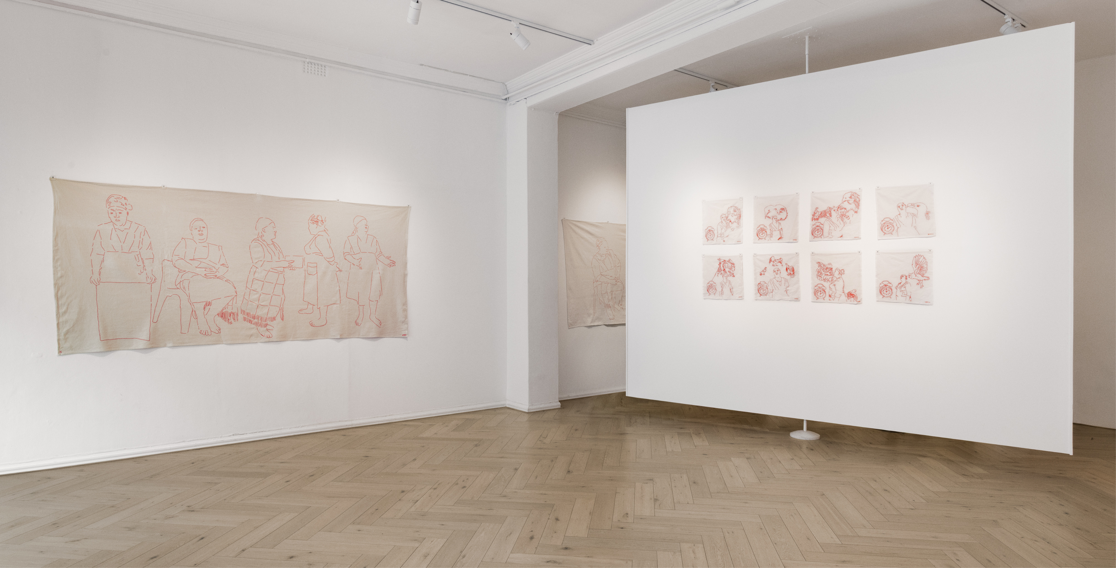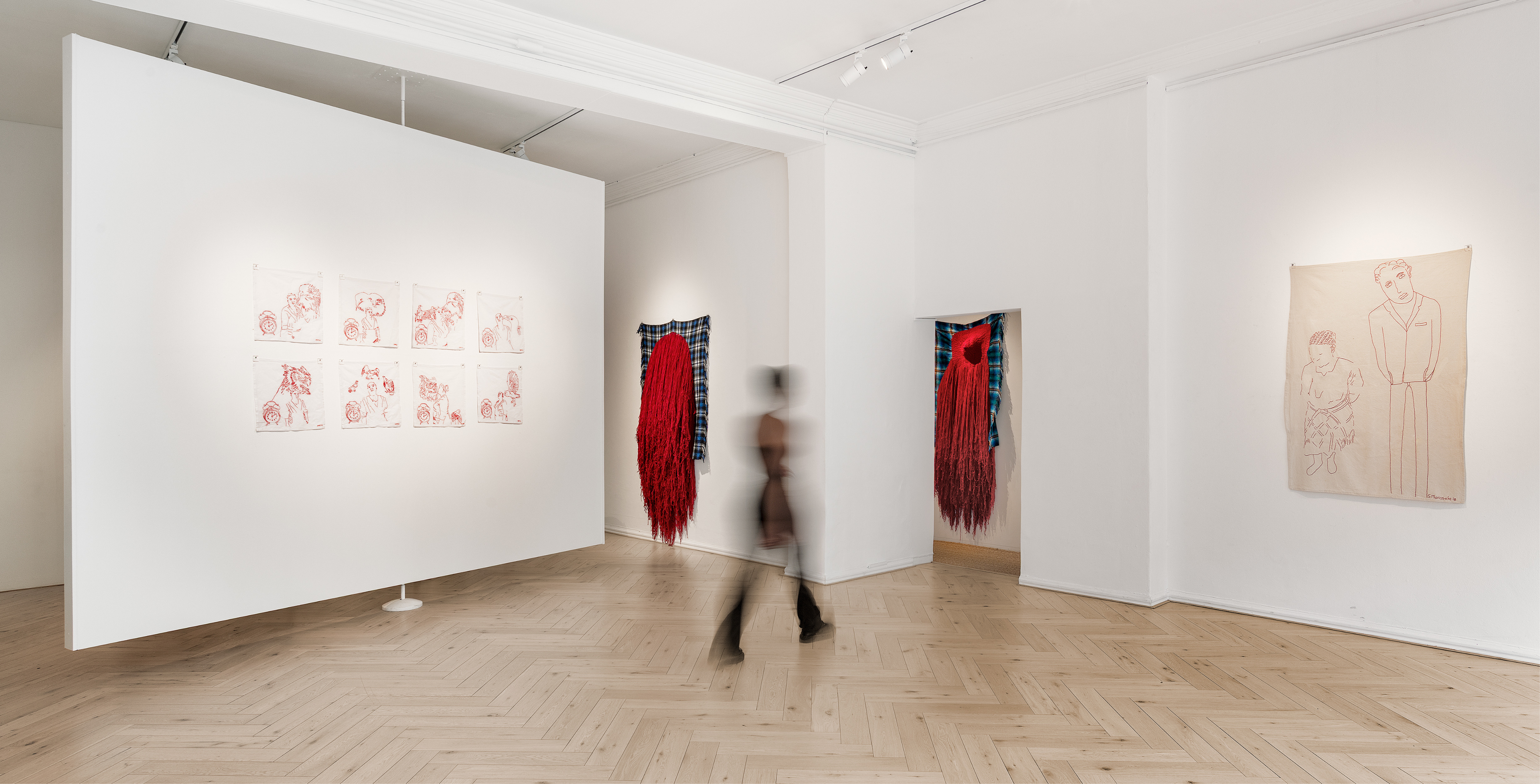 'Two O’ Clock' is an attempt to materially register the symbolic weight of these issues. It is for this reason that itshali, the blanket that lives so prominently in this body of work, performs the iconographical labour of recoiling the heaviness of this fraught history. By contrast, it further seeks to reinscribe a sense of status to an otherwise structurally denigrated subjecthood. Its formal register is curious yet forthright: it is imposing, phallic, and yet still insists on de-masculinising the representation of a burdened modern history that has revealed itself to be androcentric in nature. Herein lies the other important assault of Marasela’s work; in composing this excavation, there is an insistence to bring her-story to the fore – an acknowledgement that our historical memory remains a fragile archive so long as it continues to render particular subjectivities as permanent minorities. Thus her-storical work is incomplete; Theodora, as at once a constituent and signifier of this work, is too incomplete. In 'Two O’ Clock', Marasela’s subversive stitching is a procedure that involves working through, rethinking, reassembling, and repairing a form of worlding that is constantly threatened by technologies of power and historical phenomena that shape our becoming.