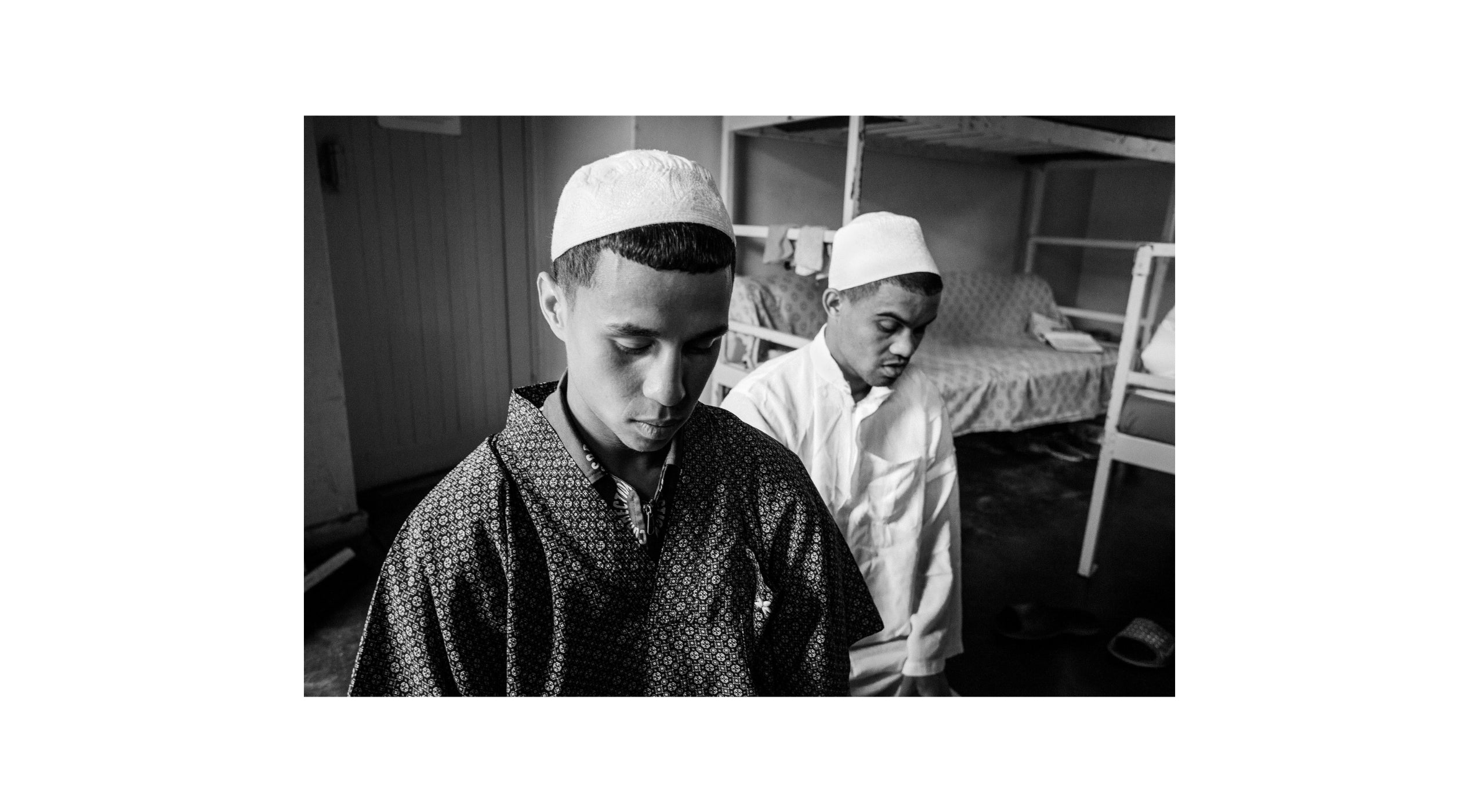 "I spent over two years following the offender-boxers. The path to gaining their trust was long and arduous; I was scrutinized and not let in or easily trusted. My first break came through with Abdul-Aziz (Dula), a young boxer who had been sentenced for murder. Before being incarcerated, Abdul-Aziz lived with his family in Brooklyn; in geographical terms, we were neighbours as I lived in Milnerton at the time. Our relationship grew to the point where Dula allowed me to photograph him praying in his cell. The image of a heartless monster portrayed by media had given way to an image of a man of faith on his knees in prayer."