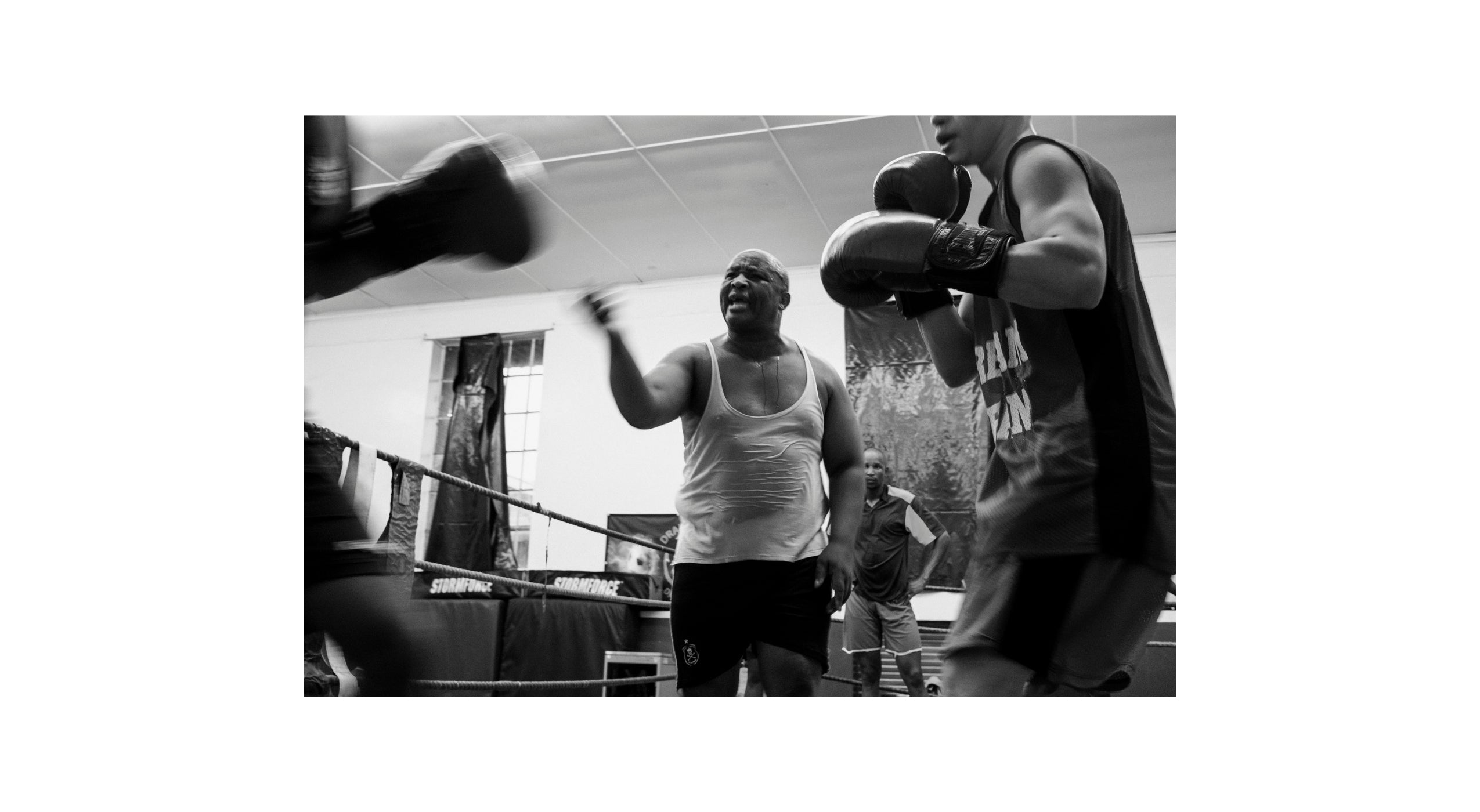 Warren Baynes' striking series of images which offer the viewer a portal into the world of crime, punishment and rehabilitation for the offenders at Drakenstein Prison. For these prisoners, boxing offers a way out from the indoctrination of South African gang culture and violence.